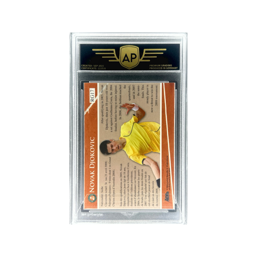 Táto zberateľská karta z edície 2008 Ace Authentic zachytáva Novaka Djokovića, jedného z najväčších tenisových hráčov všetkých čias, počas turnaja Roland Garros. Karta pochádza z obdobia, keď sa Djoković začínal etablovať medzi absolútnu tenisovú elitu, čo z nej robí mimoriadne zaujímavý kúsok pre zberateľov tenisových kariet.