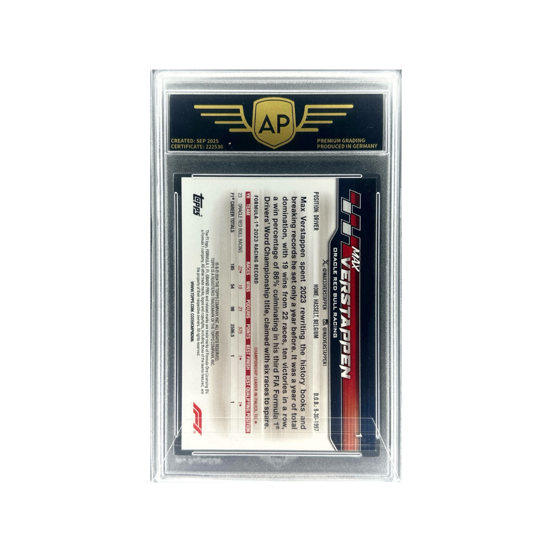 Hodnotenie AP 9.0 (Mint) potvrdzuje veľmi dobrý stav karty, pričom slabšie rohy (8.5) mierne znižujú celkový grade, avšak ostatné subgrades ukazujú kvalitnú zachovalosť. Ako karta číslo 1 v sérii má aj vyšší zberateľský potenciál, najmä medzi fanúšikmi modernej F1 éry.